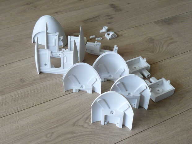 Todas estas partes necesarias unas 20 horas para imprimir en mi! a 0,3 mm de espesor de capa. Tomó unos 500g de filamento PLA.