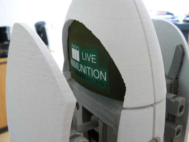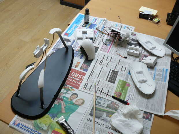 La torreta tiene sólo 3 colores: blanco, gris oscuro y verde. Imprimir todas las partes en blanco pero pinté las partes blancas blanco otra vez para conseguir los colores derecho y a las imperfecciones de la máscara.