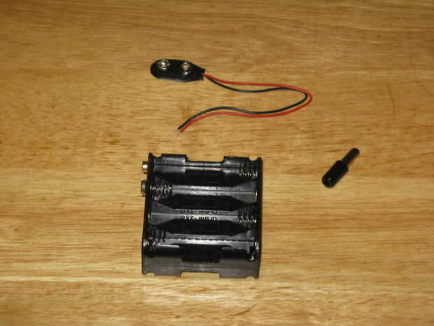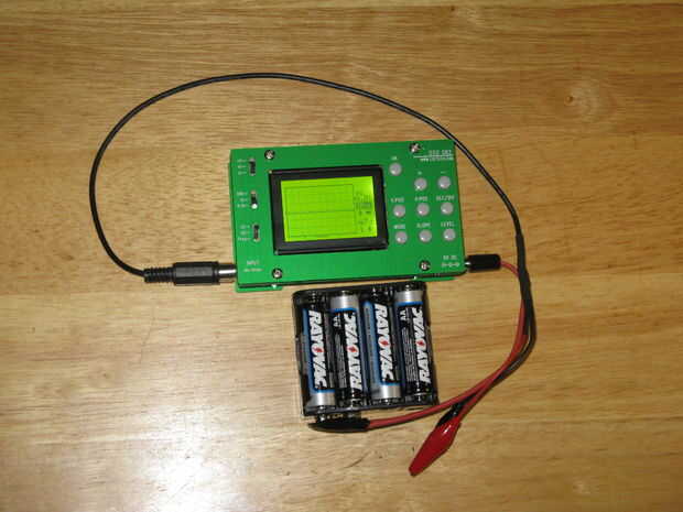 Colocar las 8 pilas AA en el portapilas, clip de la batería de 9 voltios terminal al titular y enchúfelo en el osciloscopio y verlo arrancar.