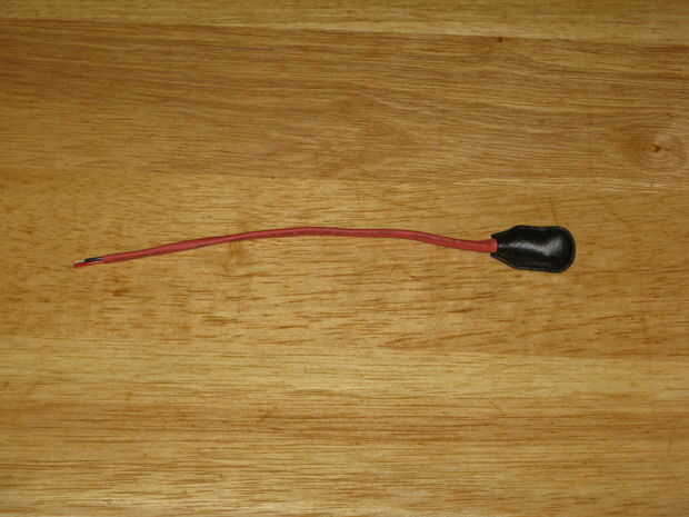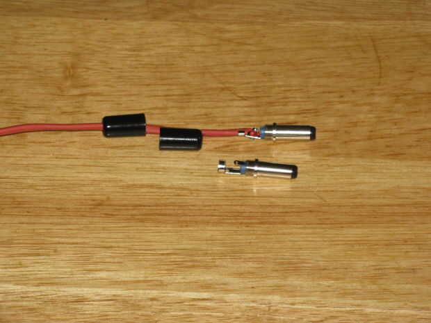 Luego soldar el cable rojo a la ficha de centro del conector del cable coaxial y el cable negro a la pestaña exterior y atornille el collar en el lugar.
