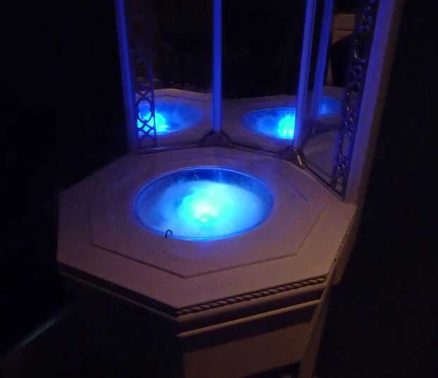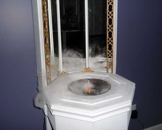 Quería una manera de ver las fotos de nuestras pasadas fiestas de Halloween en un tazón grande de agua. Realmente sumergirse fotografías no era casi fresco, así que decidí yo Coloque una pantalla de LCD por debajo el tazón de fuente y ejecutar una galeria de fotos en modo presentación. He probado todo tipo de orientaciones y considerado incluso el uso de espejos, pero usando una laptop no me deja conseguir la forma de gabinete de pensadero que después. Así que decidí utilizar a un monitor de LCD independiente dentro de la hélice y un ordenador portátil externo para ejecutar la presentación.