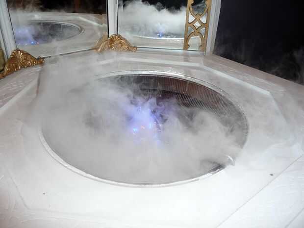 El monitor de proyección de diapositivas bajo el agua veía bastante bien, pero necesitaba algo más para que sea revivido. Pensé que de vez en cuando echar hielo seco en el tazón de fuente, pero eso requeriría un poco de atención durante nuestra fiesta. Entonces me di cuenta de que un mister ultrasónico sería genial. No sólo sería producen constantemente una mentira baja, niebla niebla, pero también suavemente bate el agua por lo que es siempre en movimiento que ayuda a trae las fotos a la vida. Otra ventaja es que tiene una serie de LEDs que recorrer diferentes colores. Cuando estás a pocos pies de distancia, usted no puede ver las fotos, pero el LED fundido todavía un extraño brillo en toda la habitación.