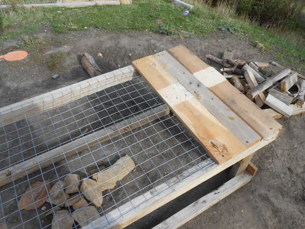 os adjunto algunas tablas de madera de paletas al fondo y, una vez clavado hacia abajo, yo los corte a la longitud.  Podría haber medido les primero, y que posiblemente sería un mejor enfoque. Aún así, funciona bastante bien.