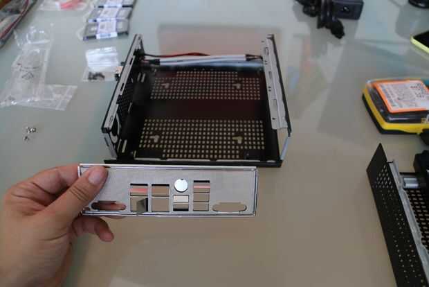 Vamos a tomar el panel posterior recorte que viene con la placa madre y pop abrir todos los puertos opcionales excepto la ronda uno marcado en la foto. Debería verse como la tercera imagen. Luego empuje la placa frontal del interior de la caja y empuje hasta que salte en el lugar