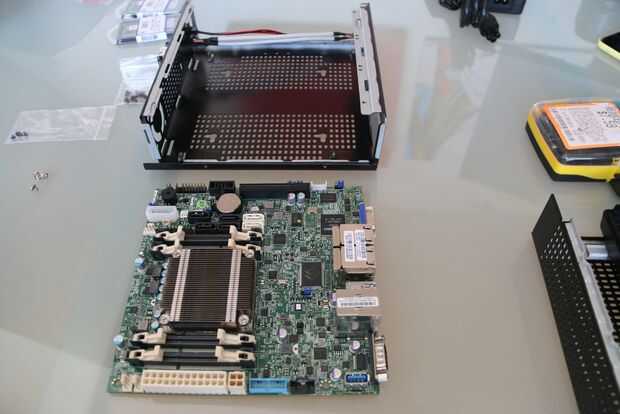 La placa base se deslizará desde el lado de la caja. Deslice suavemente y Compruebe la VGA y puertos serie para ver si son rectos o curvados. Si ellos están dobladas, enderezarlas pero no use fuerza excesiva.