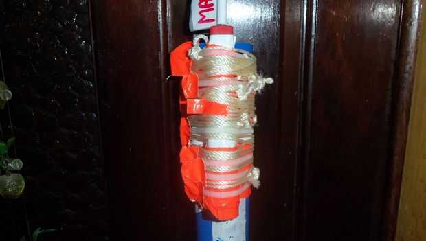 4. Tire firmemente, luego lo lazo alrededor de la manija/poste varias veces, manteniendo la alta tensión de la cuerda.