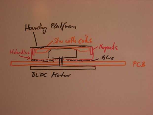 Las bobinas del generador que gira con el punto de vista pcb. Por lo tanto los imanes necesitan montarse en el pcb estático del motor y la estrella con las bobinas en el eje del motor.