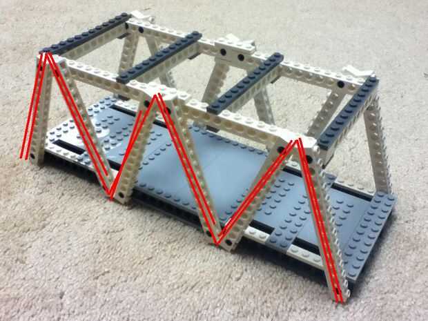 Un puente de armadura no es sólo un puente ordinario, utiliza triángulos para apoyarse. Utiliza triángulos porque triángulo son la forma más robusto para una estructura. Son más fuertes que los cuadrados y círculos. La estructura puede tensión compresión o tensión en el triángulo en forma de estructura. Puentes del braguero son un tipo muy antiguo de puente que todavía se utiliza.