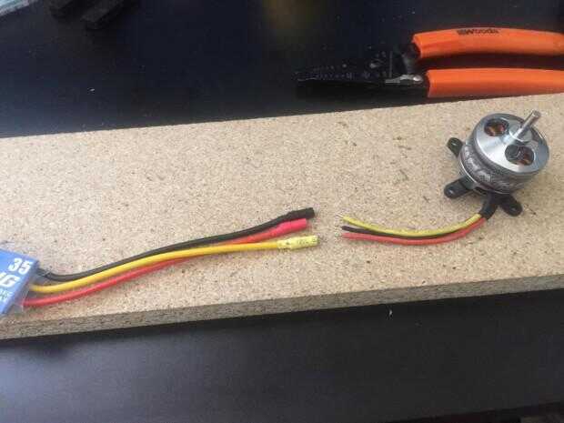 Una opción que tienes es que prensan y conexión de conectores de bala a sus motores. Sin embargo, elegí la ruta de les de soldadura directamente en esto no sólo proporciona una conexión más sólida entre el motor y el ESC, pero también era más fácil para mí a soldarlos. Para ello, primero tienes que usar sus tenazas para cortar los conectores de bala de los CES.