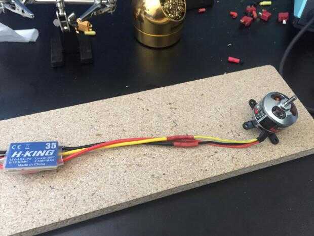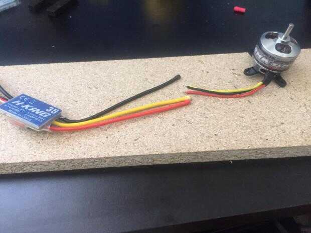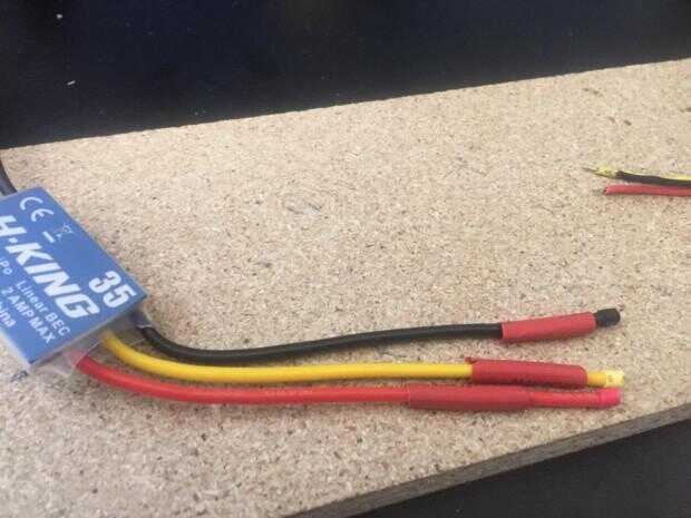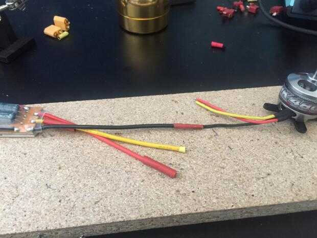 Ahora, repita estos pasos con cada alambre. Para evitar cualquier cortocircuito accidental, hice cada cable a la vez. Los cables deben ser de color codificado, así que les juntas de soldadura debe ser sencillo. Sólo coincide con el negro con negro (masa), el rojo con el rojo (energía) y el amarillo con amarillo (señal). Al final, debe tener un motor completamente conectado y un combo ESC.