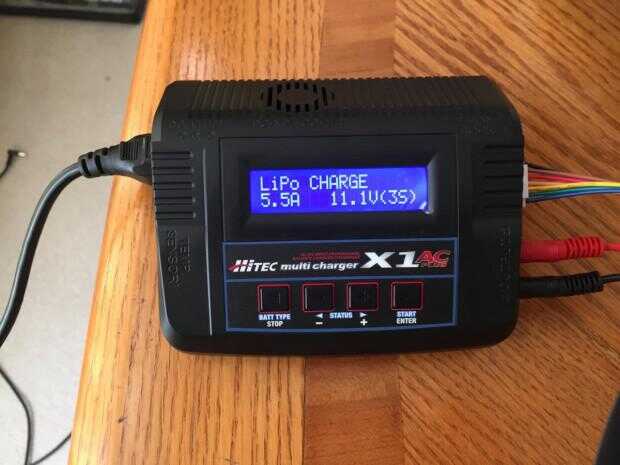 Carga de la LiPo es bastante recta hacia adelante. Tienes que configurar los ajustes para que coincida con su batería. Simplemente que la mAh amperios del cargador (5500mAh = 5.5A). Configure el número de celular/voltaje de la batería. Mi batería es de 3 celdas que 3S o 11.1V. Entonces simplemente mantenga presionado el botón de inicio, ejecutar una comprobación de la batería y entonces comenzar la carga. Una forma de saber que están totalmente cargadas es que su LiPo dejará de carga por cuenta propia, o la batería llegará a 12.6, que es el punto de carga máximo para baterías de 3S.