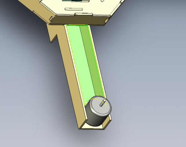 se nota que es un simple prisma rectangular hueco. Pensé que un brazo largo hueco puede no ser el mejor estructuralmente, especialmente ya que esto probablemente accidente a menudo. Decidí hacer una especie de i-beam en el brazo, no sólo ayuda estructural, pero también proporcionan un buen divisor para mis hilos. Mi diseño de pieza i-beam terminó así: