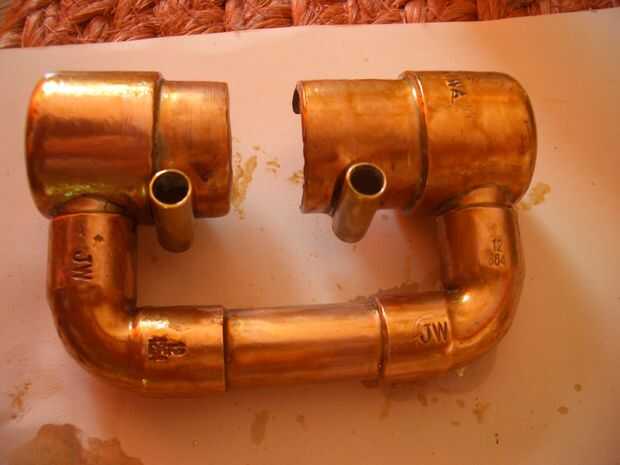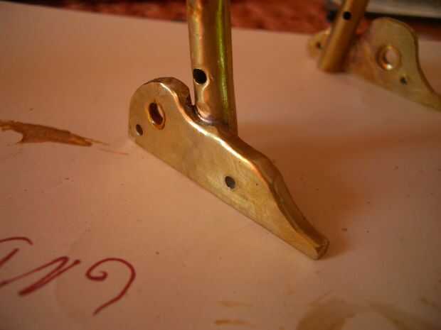 Se presentó el soporte de la manija de cobre amarillo y soldado algunos tubos de latón en él para que sea estable.