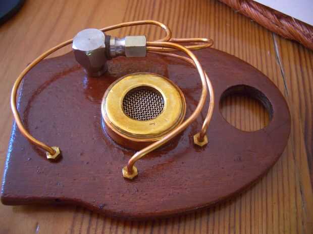 La arr "tubos" de hilos de cobre las "ventanas" fue hecho de un pedazo de tubo de cobre cubierto con una arandela de latón