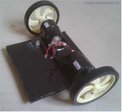 La base de cartón es entonces envuelto en cinta aislante negra para que el robot va a quedar bien y es muy fácil de pegar placas de circuitos utilizando cinta de doble cara.