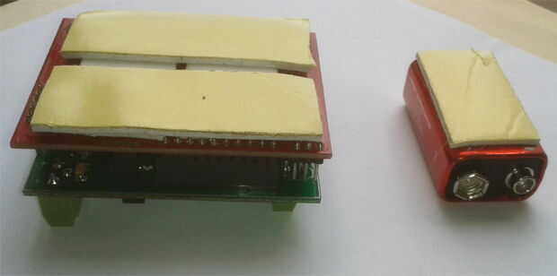 Coloque el lado adhesivo de la cinta de doble cara a la parte inferior del tablero de launchpad lleva el paquete del aumentador de presión.