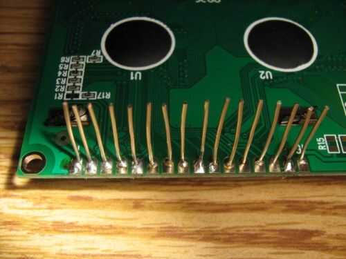 Tu lcd tiene 16 pads de soldadura de agujero estertor así que lo primero es poner unas pinzas. Si su patente entonces yo recomiendo comprar una cabecera como esta http://www.sparkfun.com/commerce/product_info.php?products_id=117. Pero si quieres hacer como rápidamente como sea posible (como yo) entonces puede usar alambre.