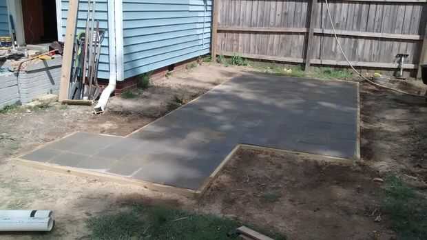 me puse a construir una pequeña pero permanente fuego área de hoyo/patio. Las dimensiones consiguieran revisadas como fui aunque a lo largo, y terminé con un patio bastante grande losa y pared de sala de estar. Nunca había tomado en un proyecto de ma