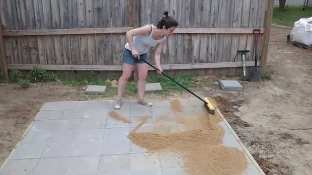 Una vez que todos los adoquines se realizan el último paso es rellenar todas las grietas con arena. Deben ser muy bien embalados allí ya pero este paso todavía ayuda a conseguir realmente sólido. Básicamente sólo pala un poco de arena en su patio nuevo y empezar a barrer alrededor. Asegúrese de que usted barre sobre todo de las grietas, y una vez que hayas terminado de barrer el exceso y aerosol apagado con una manguera. El agua ayuda a la obra arena su camino en las grietas. Tener un poco de arena extra a la mano y repetir este paso después de un par de días para llenar en cualquier huecos que pueden se han abierto desde el asentamiento de patio.