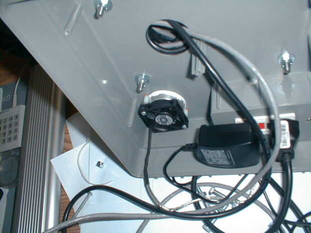 Para montar el ventilador USB utilice espaciadores y taladre agujeros para los tornillos.