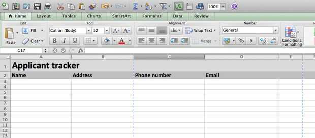 Construcción de un solicitante de trabajo seguimiento de hoja de cálculo (3 / 7 paso)