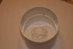 Lo bueno de este material es fácil de trabajar con un 1:1 por la mezcla de volumen. La silicona es bastante fluida, pero todavía debe tener cuidado con las burbujas. Vierta la mezcla de la silicona en un carpintero de tubo PVC de 4 con el original boca arriba en la parte inferior. Mi unir tubería no suave en la parte inferior, por lo que selló los bordes con arcilla para evitar que la silicona líquida escaparse hacia fuera. Algunas personas hacen sus propias cajas de molde para este paso, pero el PVC trabajado grandes para mí.