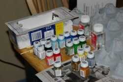 Usé esmalte pinturas de Testor, tienen una buena selección de color y eran las pinturas de esmalte sólo mi tienda de artesanía local tenía de todos modos. Esta parte es muy importante: pedir, pedir prestado o robar un aerógrafo, prometo no te arrepentirás. Un aerógrafo no sólo vuelve una persona cuestionada por el arte como yo en un pro, también utiliza menos pintura hacerlo! También conseguir algún periódico para colocar, algunas toallas de papel, hisopos de algodón y unos cepillos de diferentes tamaños. No te olvides de cepillo limpiador.
