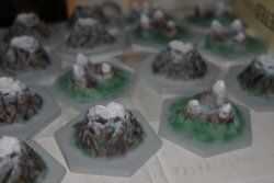 ¡ Enciende tu aerógrafo y elegir un color. No tengas miedo a experimentar! Estaba realmente abrumada al principio y no sabe por dónde empezar, así que permítanme hacer una recomendación: coge un bonito marrón y rociarlo alrededor de la mitad de sus montañas. Pasar a otras partes que necesiten marrón para reducir el número de selectores de color que hacer con el aerógrafo. Odio esas cosas de limpieza. Cambiar a un color verde forestal y pulverizar la base de las montañas, luego añadir el blanco a la parte superior. Eso es todo que hice aquí, y parece bastante ingenioso. Añadir un final de dos capas de capa clara mate y estarás listo para jugar!