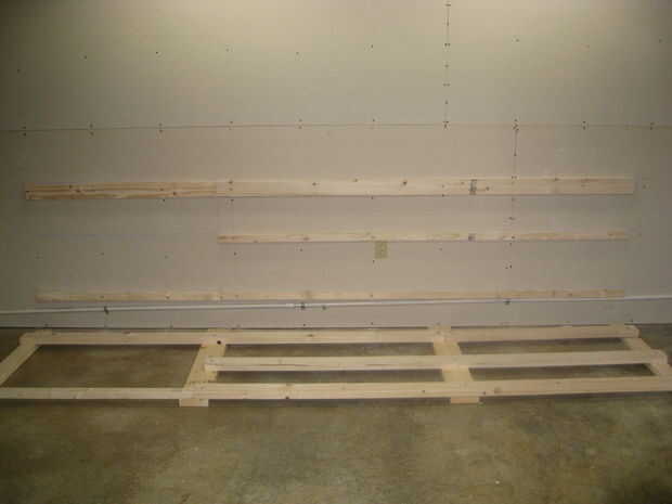 El diseño de la imagen del espejo era la clave, junto con el uso frecuente de la Plaza de la estructura y la cinta métrica para asegurarse corrió paralelos con las abrazaderas de pared. Los agujeros piloto hizo la tarea de conducción en 2 1/2" tornillos mucho más fácil.
