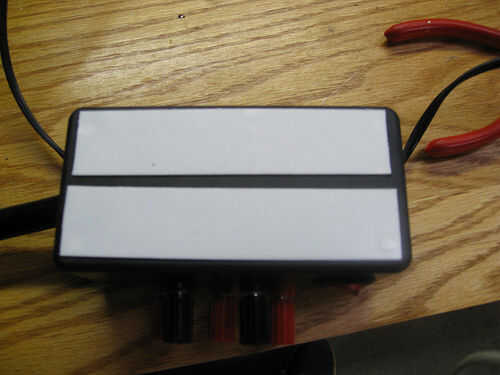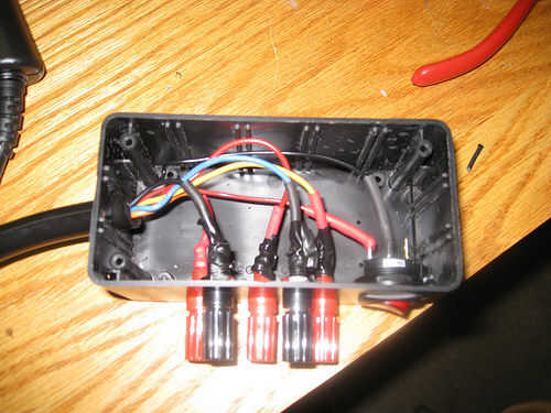 Una gran herramienta que se utilizó por primera vez en este proyecto era un poco de paso; nuestro fue hecho por Greenlee. Hizo un gran trabajo de expansión de pequeños orificios a la 3/8" para los mensajes de plátano. El interruptor se conecta a la IEC neutro en lugar de mímico un PC "encendido", que momentáneamente puentes el cable verde a tierra. La tubería negra entre las cajas es manguera de acuario caliente pegado en ambos extremos y doblar con la ayuda de la pistola de calor. Por último, la caja negra se sujeta con cinta de doble cara.