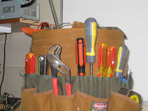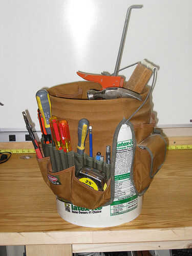 -El cubo sostiene objetos largos (pedazos de tubo, calafateo pistolas, sierras de mano) que no podrían caber en una caja de herramientas. El mango es lo suficientemente cómodo y los bolsillos hacen las herramientas en la parte exterior muy accesible. El fondo puede obtener desordenadas y completo si lo dejas, y polvo y aserrín tienen un camino fácil.