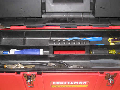 -La caja tiene una bandeja superior extraíble para segmentar el área de almacenamiento. Herramientas están protegidas de la lluvia, polvo y suciedad. La parte superior incluye pequeños contenedores de plástico ideales para pequeñas tuercas, pernos y conectores de electrónica, pero encontrar espacio para una caja de 5 libras de enmarcar los clavos puede ser difícil.