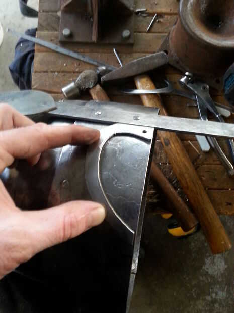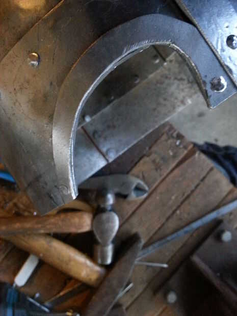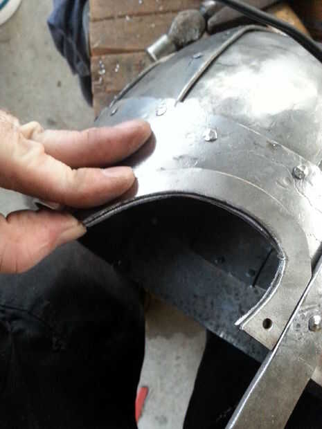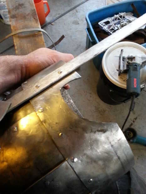 A continuación, curva las cejas para emparejar el casco y utilizado para trazar los cortes. Me utilizado mi rompecabezas para cortar hacia fuera luego cuidadosamente tocó con un disco de la aleta hasta que alinea muy bien con las cejas. Cuando yo era feliz con el ajuste había clavado en. En retrospectiva debo han utilizado clecos como acabé teniendo que tomar los remaches poco después.
