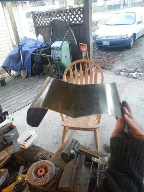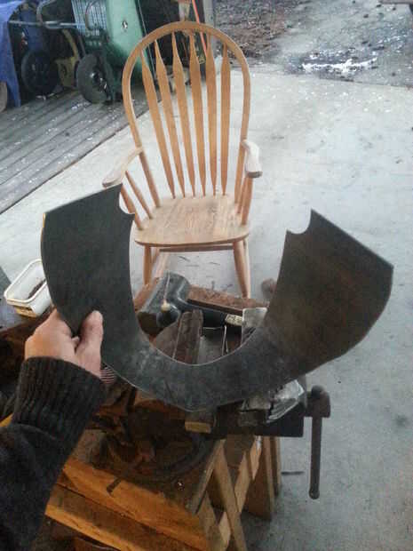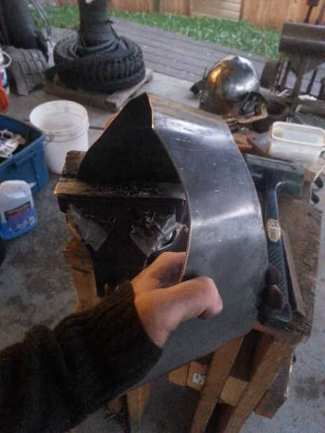 Una vez que eligió mi patrón y corte lo que forma lo era relativamente simple. Sólo usé un mazo de golpe muerto curva sobre mi juego 4" T. le dio una curva incluso agradable, pero lo dejó con un perfil cónico. Para enderezar hacia fuera de la zona de la mejilla solía mi vicio y algún músculo simplemente gírelo a donde yo quería.