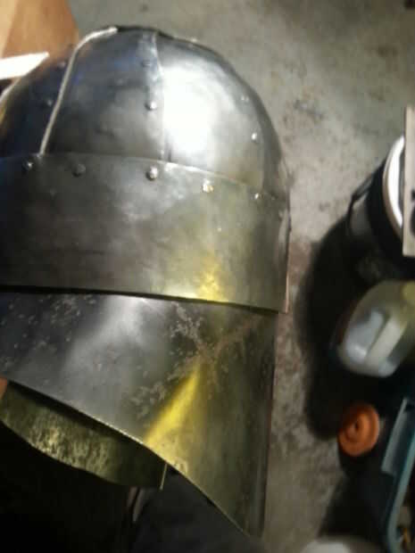 El área de la mejilla cae en línea con la banda de la frente del casco, pero la parte de atrás, sobre el cuello, hacia afuera de los instintos. para hacer más fácil clavar quemado un labio de 1/2" en el tercio posterior de la placa. Echaba de menos tomar fotografías de él, pero muestra en el siguiente paso.