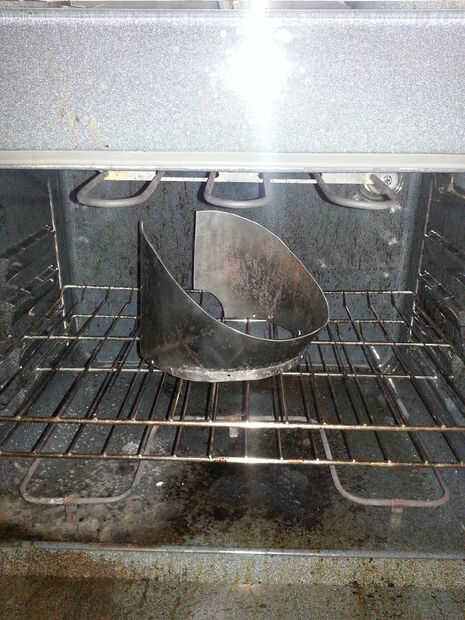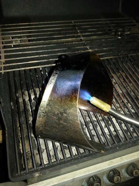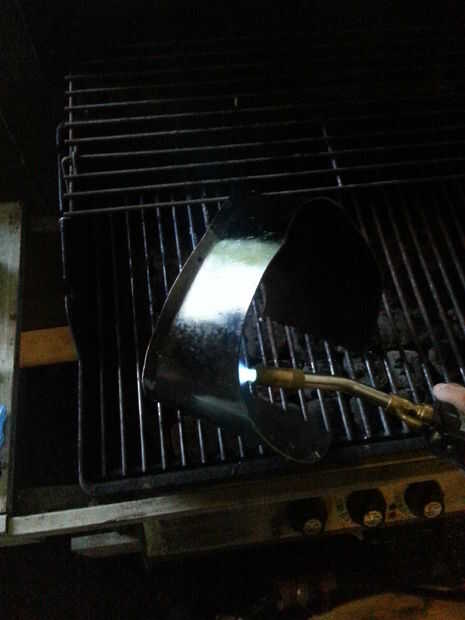 Fue hacia fuera frío, así que para acelerar el proceso, que empecé por la placa a 500 grados en mi horno de precalentamiento, luego me sacó a mi barbacoa y utiliza un soplete y un par de barrido en capas de aceite de linaza para ennegrecerlo. Una vez que fue ennegrecido era listo para montar.