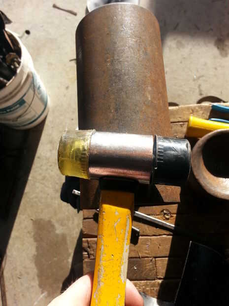 Para encajar en su lugar doblada áspero a la forma sobre una estaca de t entonces trabajó desde el centro hacia el ajuste ajuste fino en mi juego de pelota con un suave frente a martillo. He añadido clecos a los agujeros de remache cuando fui para asegurarse de que todo me alojé donde quería que.
