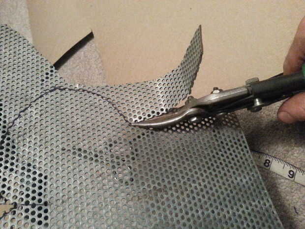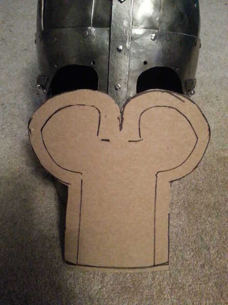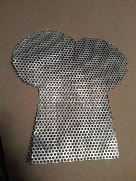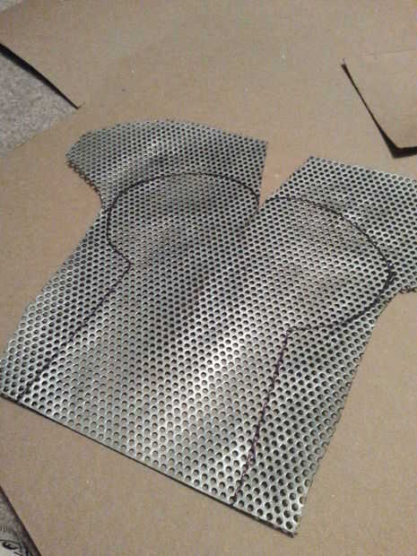 Hice el patrón simplemente presionando un poco de cartón en la abertura lo quería para que quepa y trazar el contorno. A continuación añade una generosa media pulgada alrededor y recórtalo. Cuando puse hacia fuera en la placa perf me aseguré de mantener como Plaza a las filas de agujeros como podía y añadido algún sobrante por debajo de la barbilla.
