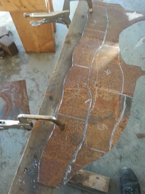 Presenta mis patrones en algunos acero 14 calibre y desde que era de hojas cogí un disco zip. Funcionó muy bien en las rectas de la banda de la frente, pero todas las curvas de S en los paneles eran un dolor. Próxima vez voy a salir a conseguir hojas más.