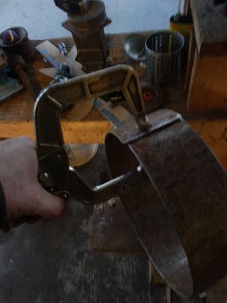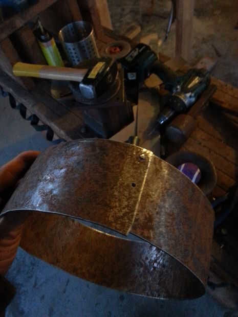 Lo primero que hice fue darle una vez con un martillo un poco abombado en mi recipiente menos profundo. Entonces le di una pasada del aplanador. Creo que esto hace que sea más fácil tomar una curva uniforme y las transiciones de la leve curva compuesta en el cráneo del casco más bonito.