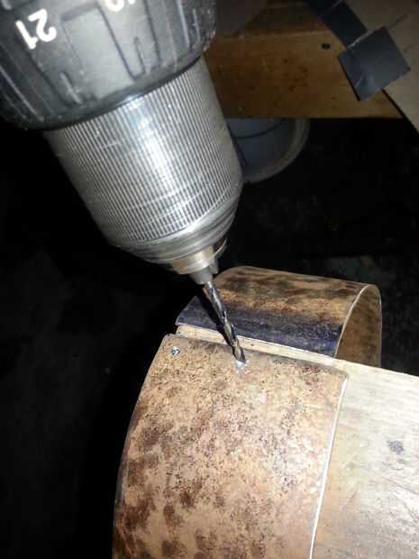 Marcado y había perforado mis orificios en la parte traslapada en primer lugar, sujeta en su lugar y luego perforar los agujeros correspondientes. Salí de la parte superior de la banda de la ceja sin clavado porque no estaba seguro donde los remaches de los paneles terminarían y no querían interferir con ellos.