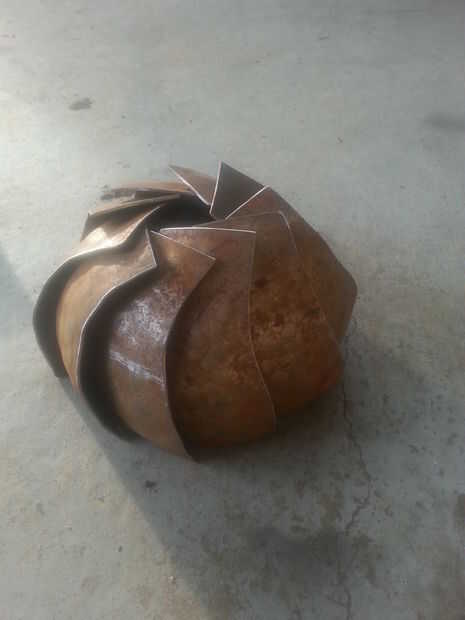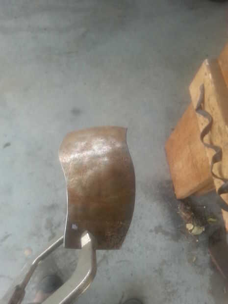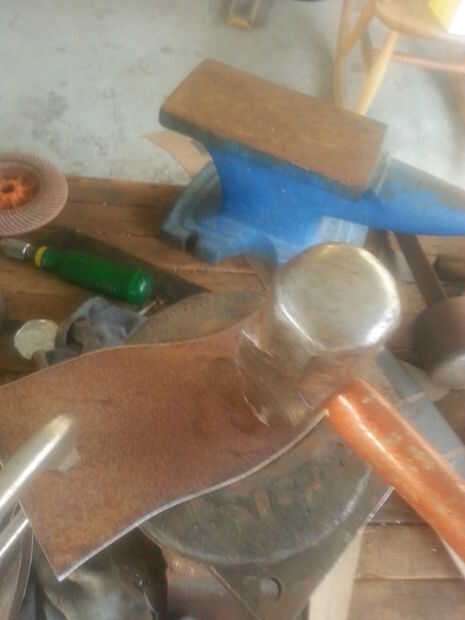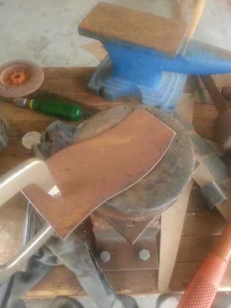Había formado con mi plato bajo las placas de mi otra vez, pero esta vez utiliza la cara más redonda de mi martillo dishing. Sólo les di unos pases rápidos va desde el exterior hacia el medio y centrarse en el tercio medio de las placas. Como lo hice sacudió la pieza de la parte superior izquierda a la esquina inferior derecha para agregar un poco de una torcedura en la esperanza de que les ayudaría a traslapo más suave.