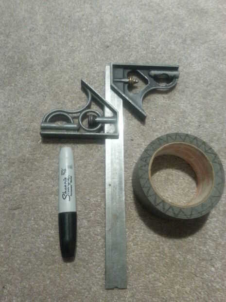 Para marcar la altura de los remaches puse 2 plazas combinación juntos y había grabado un sharpy a él. Pues yo utilizaba para marcar las alturas del remache a intervalos de 1" hasta el casco. A continuación, utilizar mi dedo como guía y funcionó una segunda línea a 3/8" en el borde. En retrospectiva, con el objetivo de una superposición de 1/2" debo hicieron mi marca 1/4" en. Hay unos lugares donde apenas cogí mi traslapos.