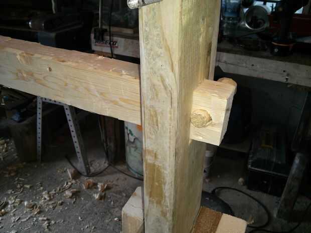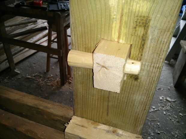 Por último, martilló el apoyo en la mortaja hasta que fue ajustado y fijado en su lugar.