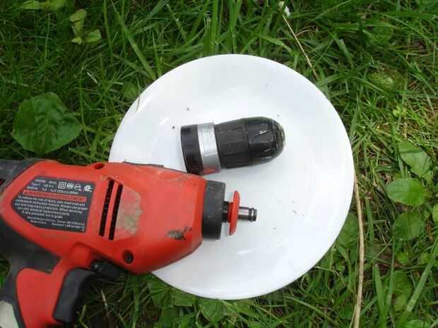 Puesto que utiliza un taladro que tiene un mandril extraíble, asegúrese de poner la tirada en algún lugar distinto en el taladro.