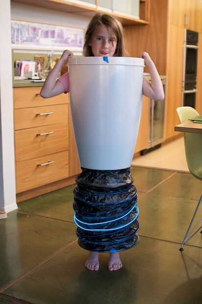 Puesto que las piernas de mi hija sobresale la parte inferior del traje por cerca de 18", decidí usar los círculos azules como una manera de ocultar sus piernas.
