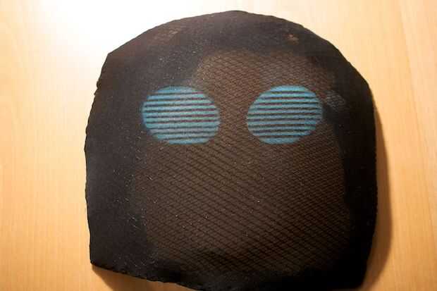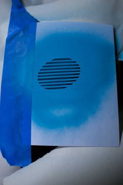 Nosotros finalmente cortar un contorno de ojos en la cartulina, luego utiliza cinta delgada para cubrir una serie de líneas en él y utiliza como una plantilla con pintura en aerosol.