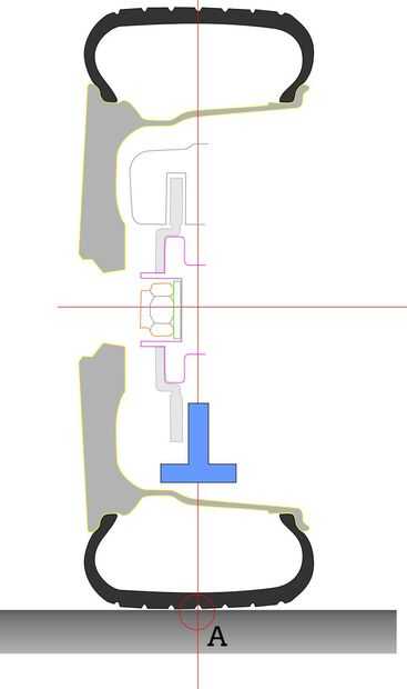 La rueda gira alrededor del punto (A) conforme a la zona donde la rueda toca el suelo por lo que no sufre el problema descrito anteriormente.