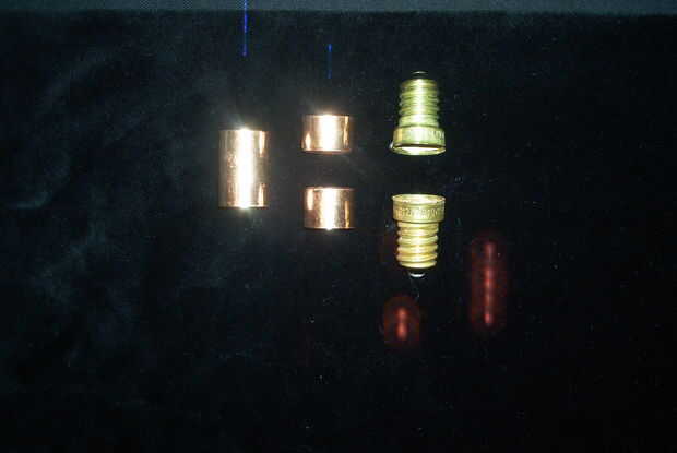 Primero recortas el conector. Las dos partes de cobre exactamente los casquillos de latón y en el tubo de acrílico se ajusta directamente en el anillo de cobre.