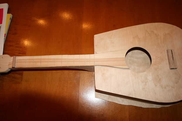 Para hacer el diapasón que tiene que pegar un listón de madera larga plana en la parte delantera del cuello, de arriba hasta la boca posibles.